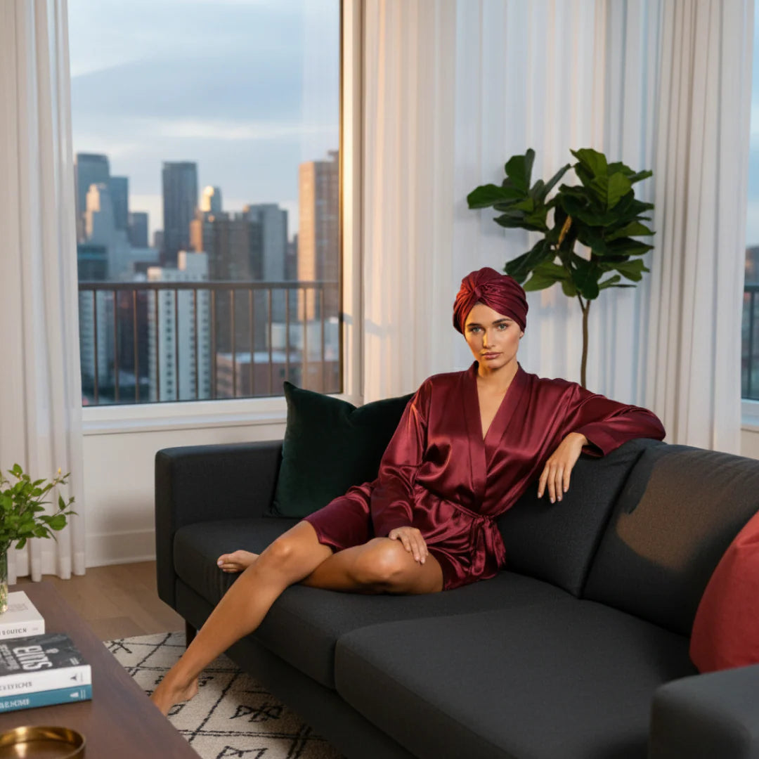 Ervaar ultiem comfort met onze premium zijden muts, ontworpen om de hele nacht goed te blijven zitten zonder te verschuiven. Gemaakt van ademende, temperatuurregulerende zijde, helpt het oververhitting te voorkomen en beschermt het je haar. Het lichtgewicht, ultrazachte ontwerp zorgt voor een nauwelijks voelbaar gevoel, zodat je rustig kunt slapen en elke ochtend wakker wordt met een perfect verzorgde haardos.