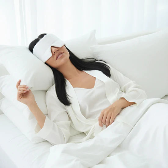 Ons Bridal Deep Sleep Mask blokkeert effectief licht en creëert een donkere omgeving die een diepe, ononderbroken slaap bevordert. Ten tweede blijft het masker dankzij de comfortabele pasvorm de hele nacht op zijn plaats. De zachte, ademende zijden stof zorgt voor een goede luchtcirculatie en geeft je ogen een extreem ontspannend gevoel. In slaap vallen was nog nooit zo gemakkelijk.